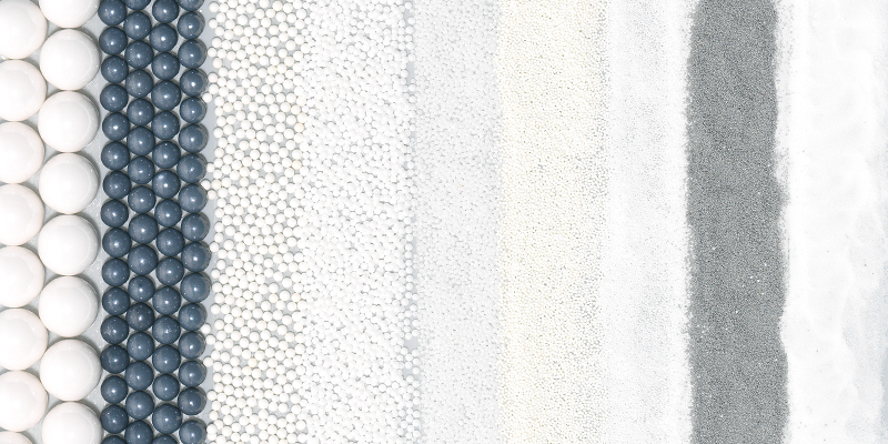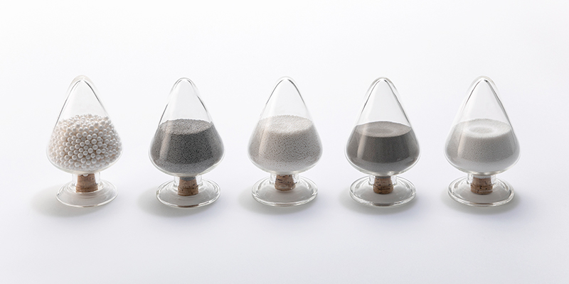 セラミックスの中でも最大の比重(6.00以上)を有するため、粉砕・分散効率に優れている